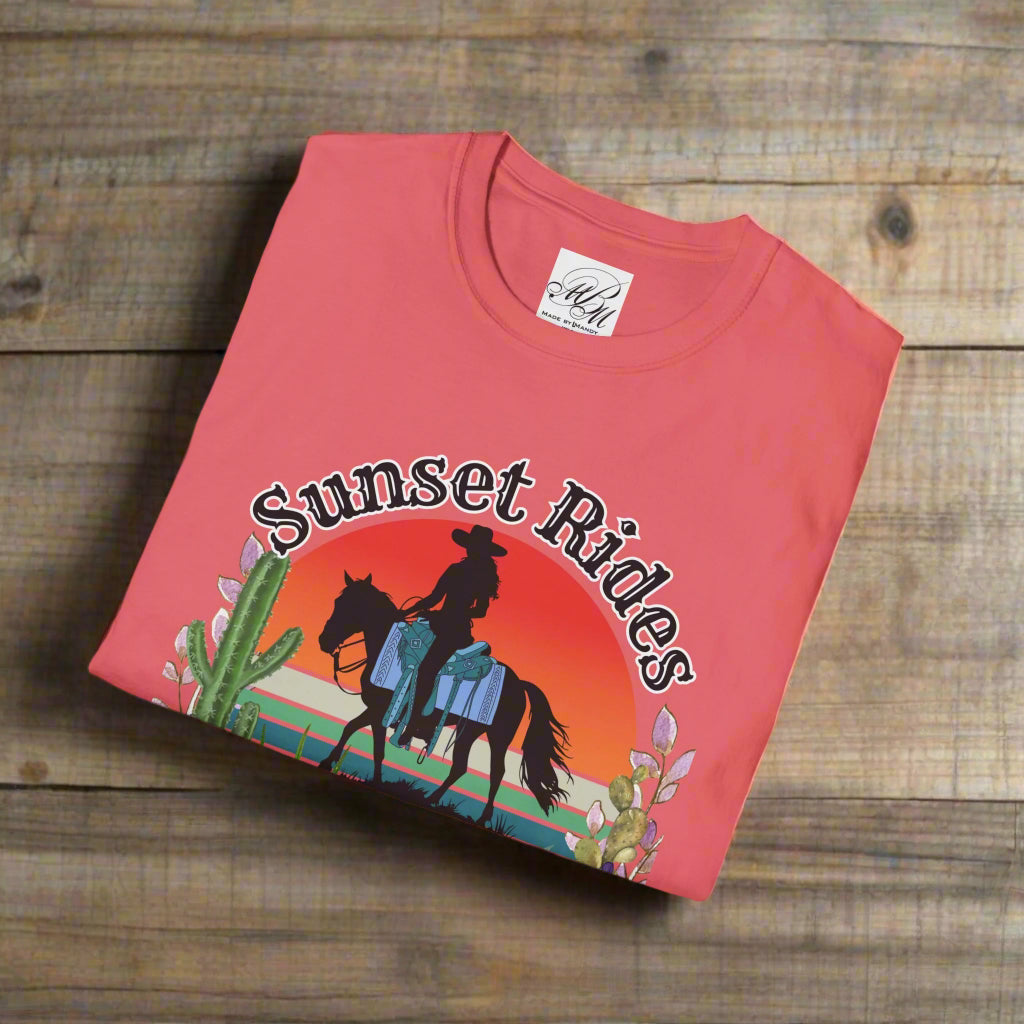 Elevate your casual wardrobe with this stylish Unisex Softstyle T-Shirt. Designed for comfort and versatility, it features a vibrant sunset and horse graphic that captures the essence of adventure and nature. Perfect for relaxed outings or cozy days at home, this t-shirt effortlessly fits into any lifestyle. It's a great choice for outdoor enthusiasts and horse lovers alike, making it ideal for celebrations like birthdays, summer festivals, or even just a fun day at the ranch. Whether you’re pairing it with jeans for a casual look or dressing it up with accessories, this tee will bring positive and uplifting vibes to your day!
